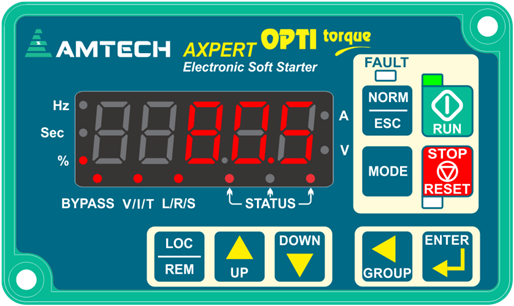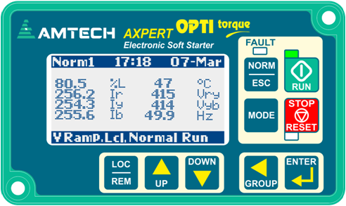 The Axpert-Opti torque series soft starters are high end industrial grade product and comes with LED (or LCD) display with keypad for wide range of parameter monitoring, adjustments and protections.